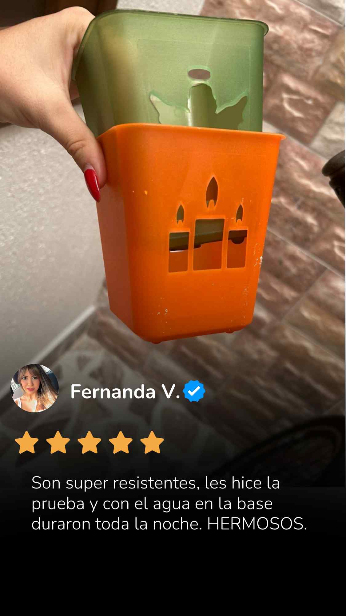 ✅ Solo necesitas agregar un poco de agua en la base, colocar la vela y encenderla. De esta forma evitas que el material se dañe y garantizas mayor seguridad.