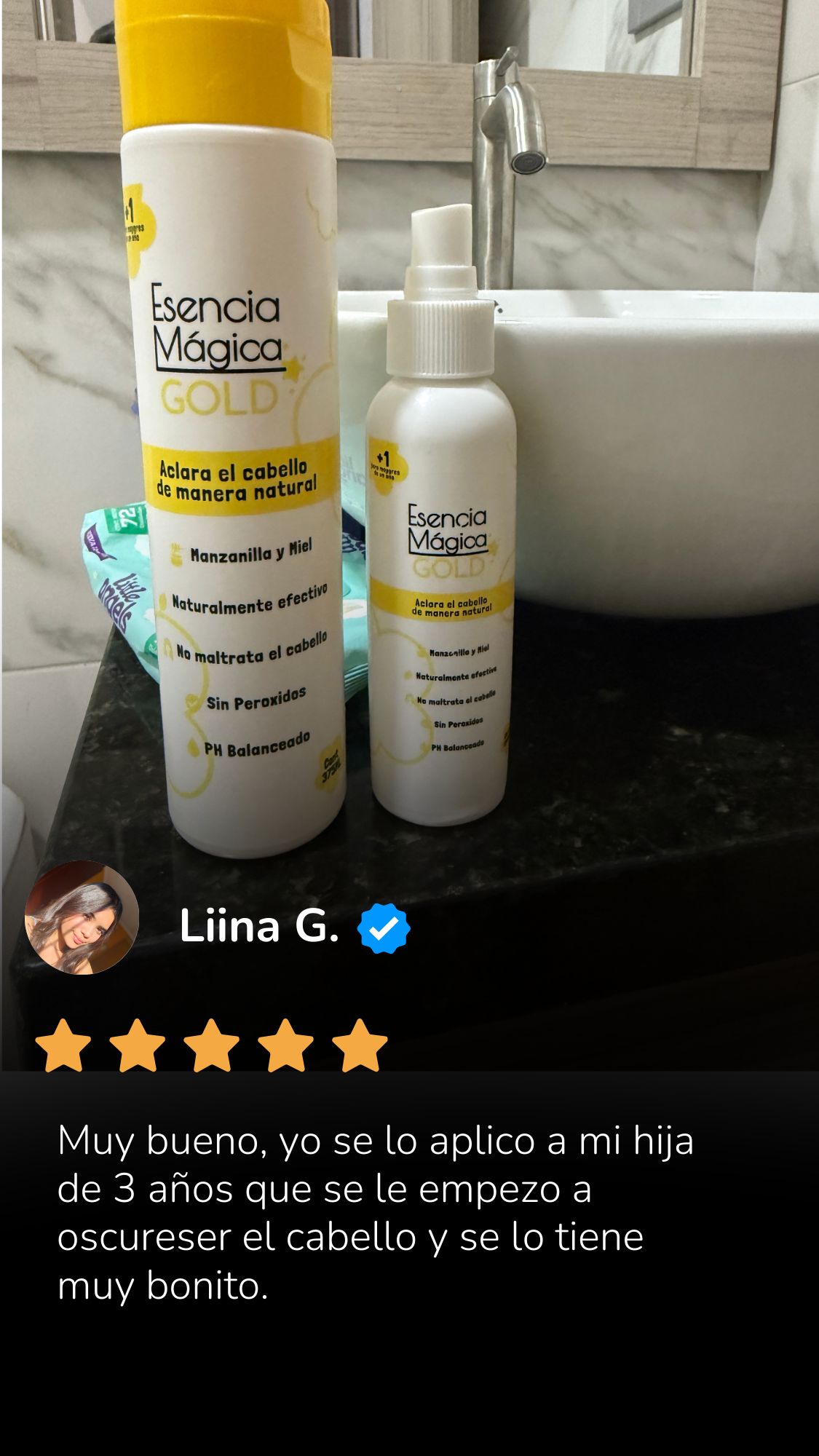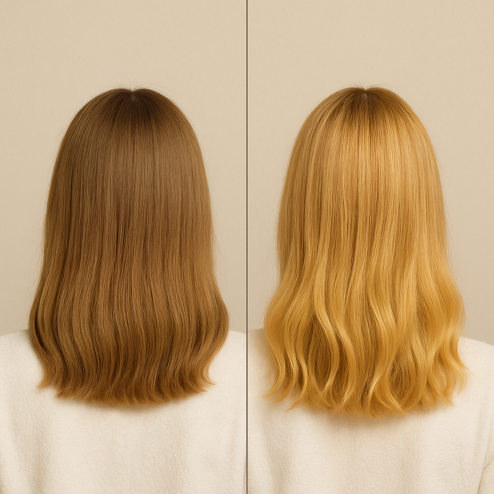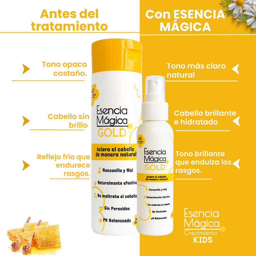 Ofrece un aclarado progresivo y natural (≈1–2 tonos) según el color y la porosidad del cabello. Muchas personas notan un primer cambio sutil desde los primeros usos y mayor luminosidad tras 2–4 aplicaciones semanales.